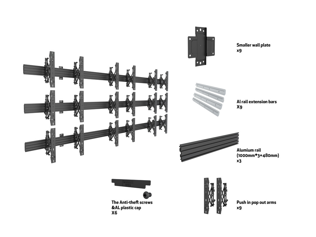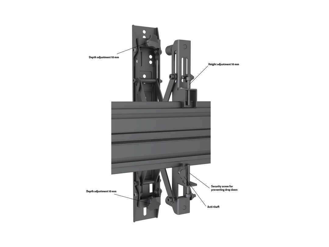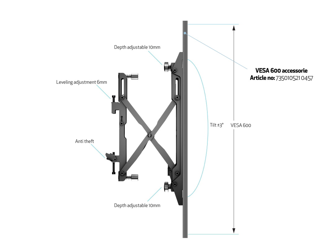 | VESA | Регулируется от 100x100 до 600x400 макс. 55" 600x400 макс. 65" 400x400 макс. Опционально VESA 800x600, 1000x600 |