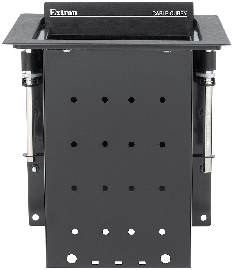 Конструкция Cable Cubby 500 имеет ряд уникальных, удобных для интегратора особенностей, разработанных Extron для оперативной сборки и инсталляции. Встроенная система фиксаторов быстро закрепляет лючок на поверхности мебели без использования инструментов. Просто поместите лючок в проём, подтяните фиксатор к поверхности, а затем, поверните крепёжный механизм, чтобы закрепить лючок на месте. Амортизатор крышки обеспечивает мягкое, бесшумное использование для гармоничной работы в конференц-залах и залах заседаний класса «High-end». В комплект Cable Cubby 500 входят стандартные крепления для подключений для установки до трёх модулей Retractor, двух панелей AAP или до четырёх AV‑кабелей. Опоры для AV‑подключений можно разместить слева или справа от выбранного блока питания AC.