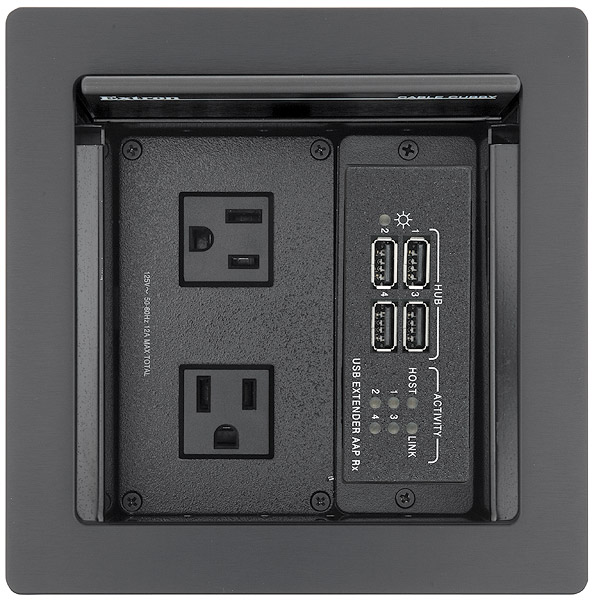 - Вмещает один блок питания AC или AC+USB для Series/2 плюс три модуля Retractor, четыре AV‑кабеля или две архитектурные адаптерные панели АAP
