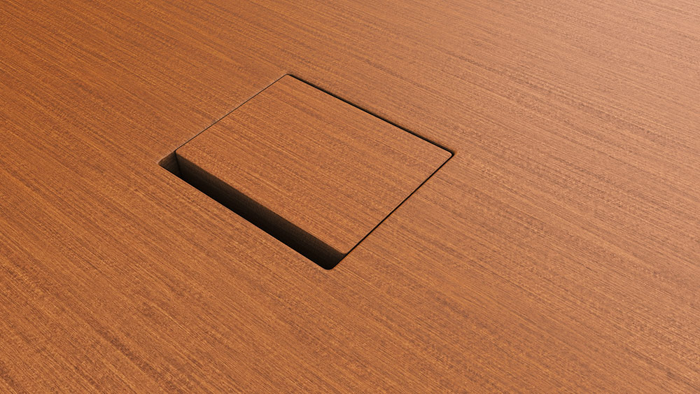 • Изысканный дизайн с установкой под столом дополняет элитный интерьер класса «High-end» и позволяет устанавливать лючок как с подходящей к столу крышкой, так и без неё — гибкая интеграция в любую поверхность с уже предусмотренной крышкой или с крышкой, изготовленной пользователем.