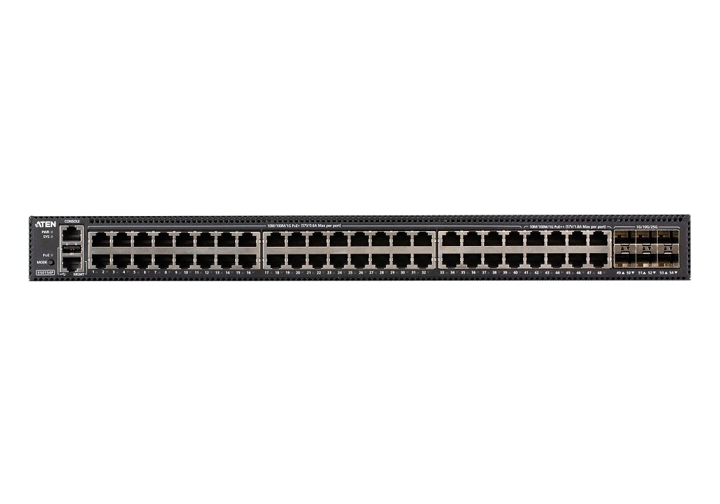 Aten ES0154P - 54-портовый гигабитный управляемый сетевой коммутатор уровня 2+ модели ES0154P идеально подходит для совместной установки с продуктами компании ATEN линейки KVM с доступом по IP, упрощая процесс построения инфраструктуры операционных технологий и избавляя от сложной настройки. Обладая высокопроизводительной конфигурацией с 54 портами, полным набором функций L2+ и расширенными функциями, включая статический маршрут уровня 3, DHCP-сервер, поддержку IPv6 и LLDP, он является универсальным решением для повышения производительности сети. Для соответствия широкому спектру сетевых потребностей он обладает комбинацией портов SFP28 (оптоволокно) и RJ-45 (медь).