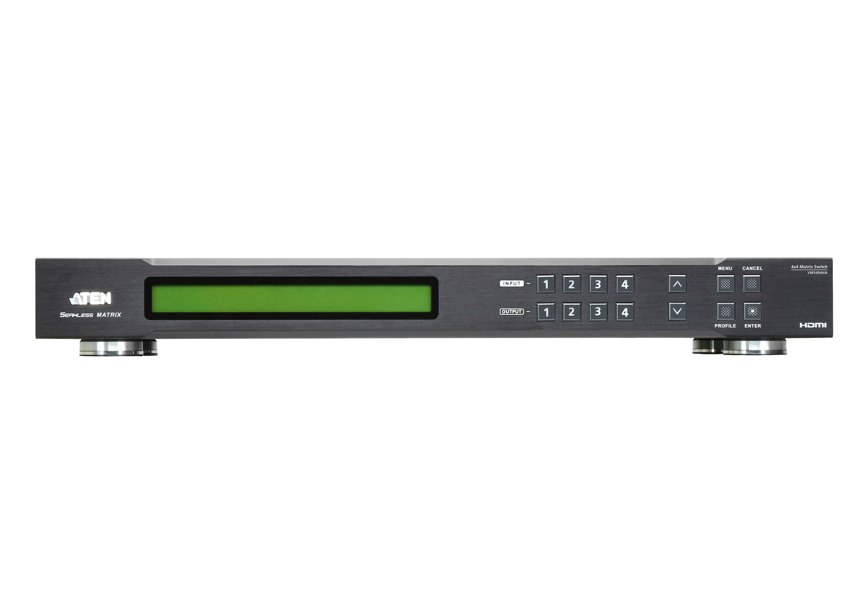 Матричный коммутатор-масштабатор HDMI 4x4 позволяет гибко направлять HDMI-сигналы от любого из 4 входных портов на любой из 4 выходных каналов. Для управления устройством доступно несколько способов, например, с помощью кнопок на передней панели, соединений по RS-232 и Ethernet (Telnet/Web GUI). При этом, поддержка приложения ATEN Video Matrix Control позволяет просматривать состояние устройства и управлять им. Матричный коммутатор-масштабатор VM5404HA также может быть интегрирован с системой управления ATEN (ATEN Control System) – платформой, на которой осуществляется централизованный мониторинг и управление матричными коммутаторами видеосигналов компании ATEN на основе Ethernet-подключения и устройствами сторонних производителей (например, проекторами, осветительными приборами, аудио-видео устройствами). Благодаря ЖК-дисплею на передней панели управление сигналом становится эффективным, что позволяет пользователям быстро просматривать все подключения на портах. Кроме того, локальный выходной HDMI-порт позволяет в режиме реального времени и на одном дисплее осуществлять мониторинг нескольких источников, непосредственно в месте расположения самого матричного коммутатора.