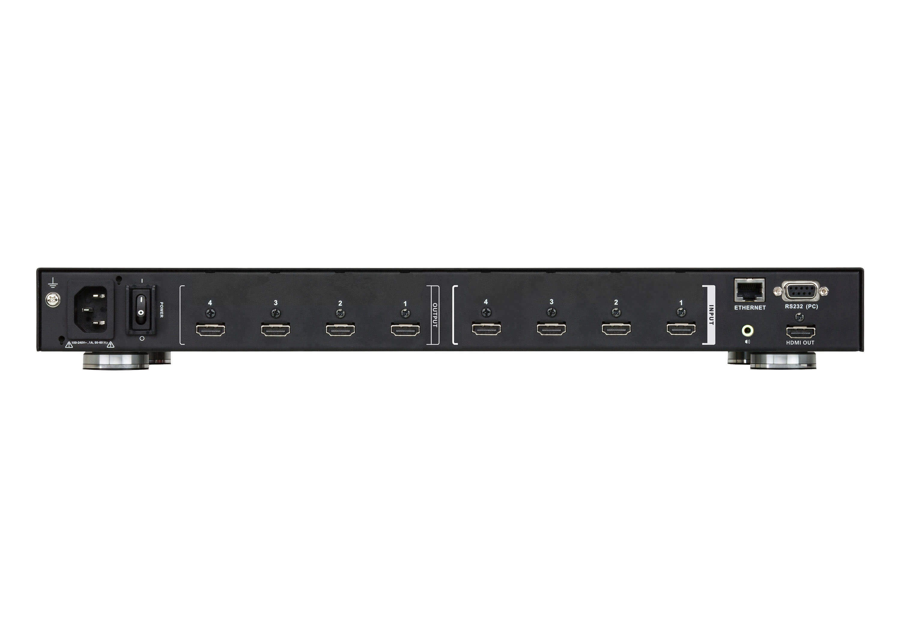 - Маршрутизирует сигнал от любого из 4 HDMI-источников к любому из 4 HDMI-дисплеев