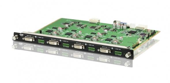 VM8604 является 4-портовой платой вывода которая предлагает простой способ маршрутизации между любыми четырьмя источниками аудио/видео и четырьмя дисплеями, при использовании в сочетании с модульными матричными решениями компании ATEN.