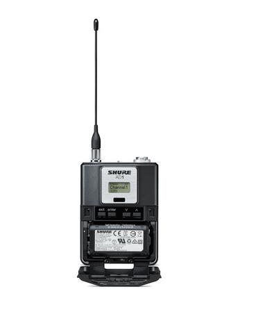 Поясной передатчик Shure AD1 беспроводной системы Axient Digital обеспечивает безупречное качество звука и радиосвязи, а также поддерживает работу в широкой полосе частот, режим высокой плотности и шифрование сигнала. Он имеет прочную металлическую конструкцию, возможность использования аккумуляторов, внешние контакты для зарядки в док-станции и разъём TA4.