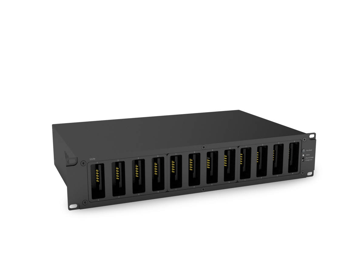 • 12-слотовое рэковое зарядное устройство для передатчиков и приёмников серии Unite
