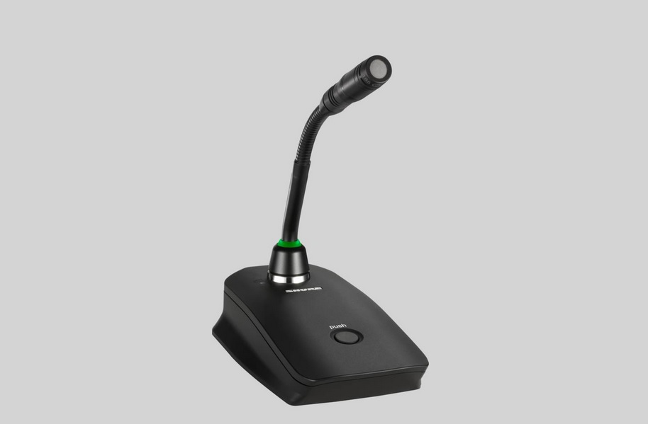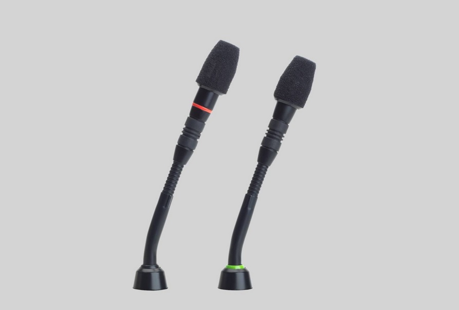 Микрофон на гибком держателе с индикацией состояния в виде красного светового кольца. Имеет гибкий держатель длиной 12,7 см (5 дюймов) и подходит для залов заседаний и других мест, где большое значение придается эстетическому фактору.