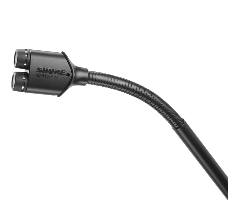 Микрофон оснащен двумя кардиоидными конденсаторными капсюлями (картриджами), установленными в едином тонком корпусе, и двумя выходными кабельными разъёмами, со съёмными предусилителями. MX415DUAL/C длиной 38,1 см имеет гибкую верхнюю секцию для удобного позиционирования микрофона.