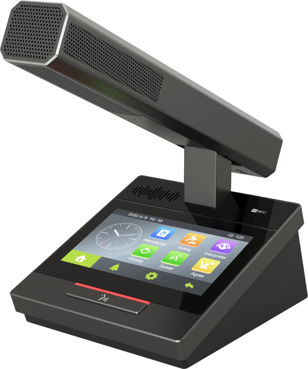 Gonsin : DCS-2044CF — настольный проводной пульт председателя с функцией голосования и синхронного перевода серии DCS-2044 предназначен для участия в совещаниях, голосованиях, многоязыковых конференциях, организованных на базе конференц-системы 10000N. Пульт выполнен в металлическом корпусе и идет в комплекте с несъёмным микрофоном в прямоугольном корпусе с регулируемым углом наклона и встроенной ветрозащитой.