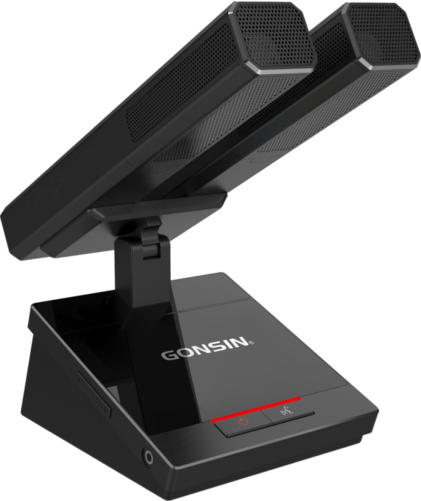 Gonsin : DCS-2045C — настольный проводной дискуссионный пульт председателя серии DCS-2045 предназначен для участия в совещаниях, организованных на базе конференц-системы 10000N. Пульт выполнен в металлическом корпусе и идет в комплекте с двумя несъёмными микрофонами в прямоугольном корпусе с регулируемым углом наклона и встроенной ветрозащитой.