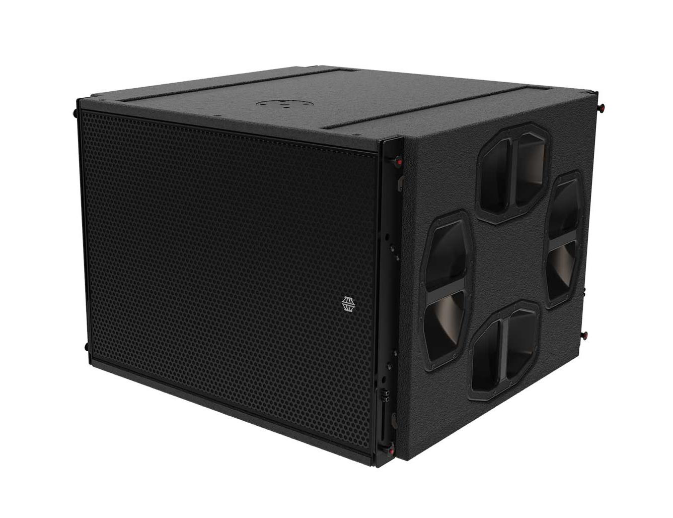 Сабвуфер оснащен двумя 15” (381 мм) НЧ излучателями с неодимовой магнитной структурой и 4” звуковыми катушками. Корпус симметричен, поэтому в случаях с подвесной или напольной установкой один из трех корпусов можно физически развернуть и собрать кардиоидный массив с использованием соответствующего пресета для DSP.