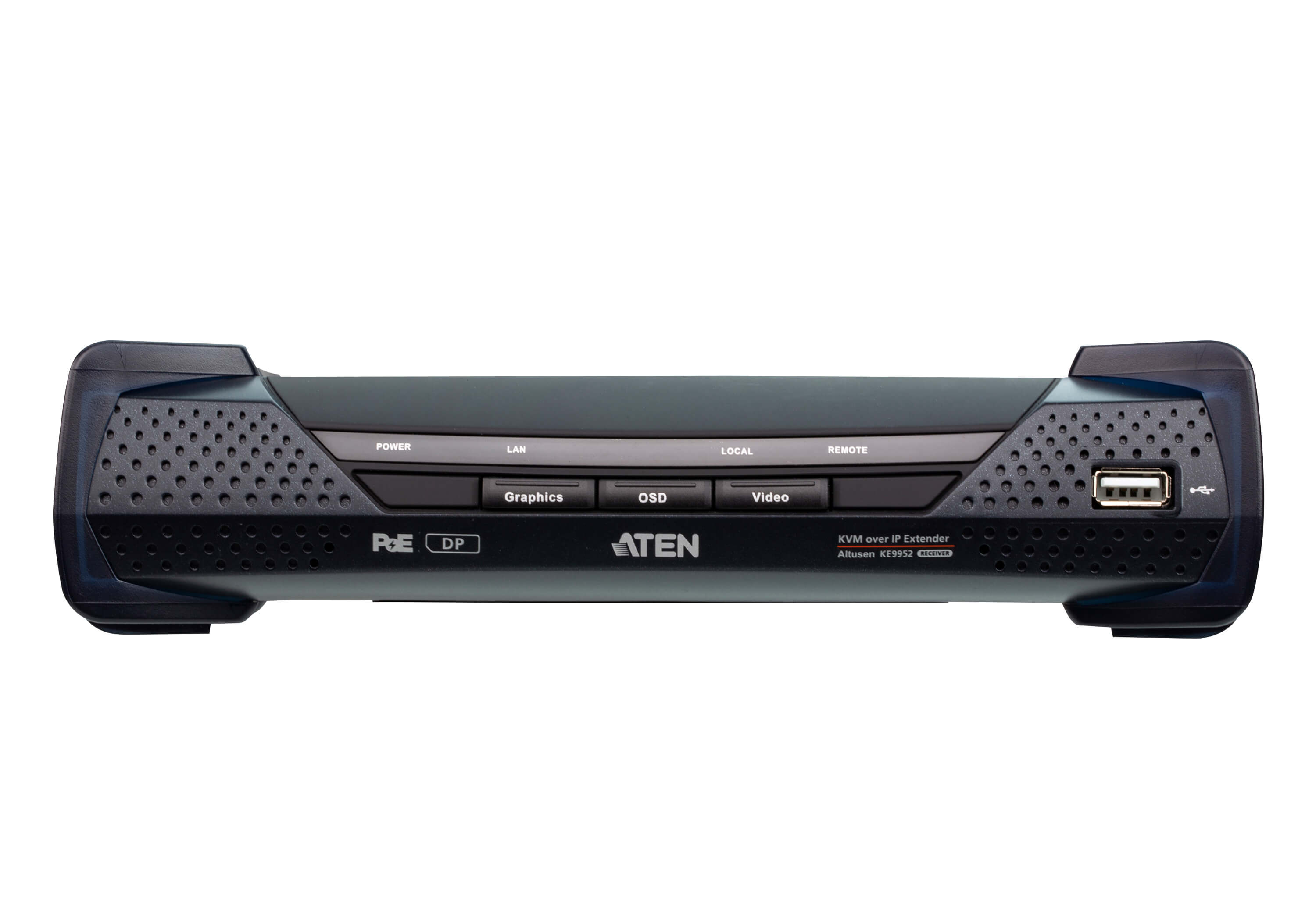 4K KVM-удлинитель с доступом по IP и поддержкой одного DisplayPort-дисплея KE9952 состоит из высокопроизводительного IP-передатчика (KE9952T), который подключается к компьютеру и приемника (KE9952R), обеспечивающего консольный доступ из отдельного расположения. Он предоставляет доступ с удаленной USB-консоли (включающей USB-клавиатуру, мышь и DisplayPort-монитор) к компьютерной системе через интрасеть, позволяя пользователям расположить компьютеры в безопасной среде с контролируемой температурой, изолированной от рабочей среды пользователя.