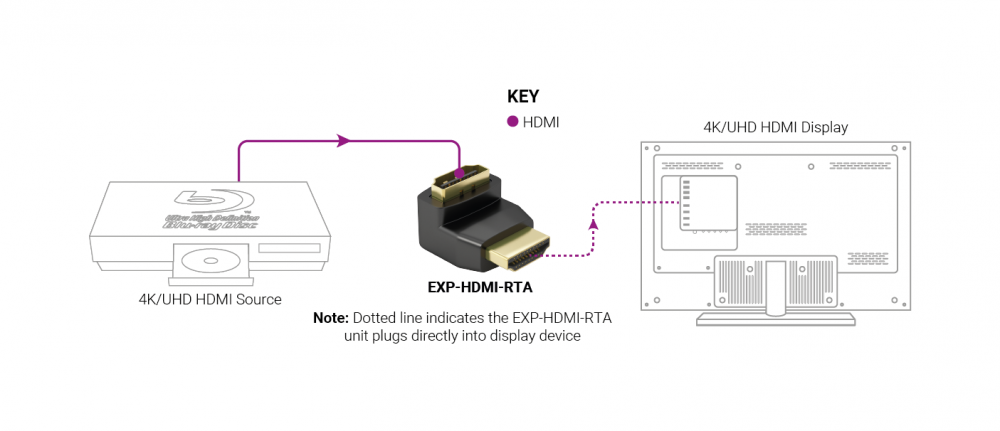 WyreStorm EXP-HDMI-RTA – угловой адаптер HDMI схема