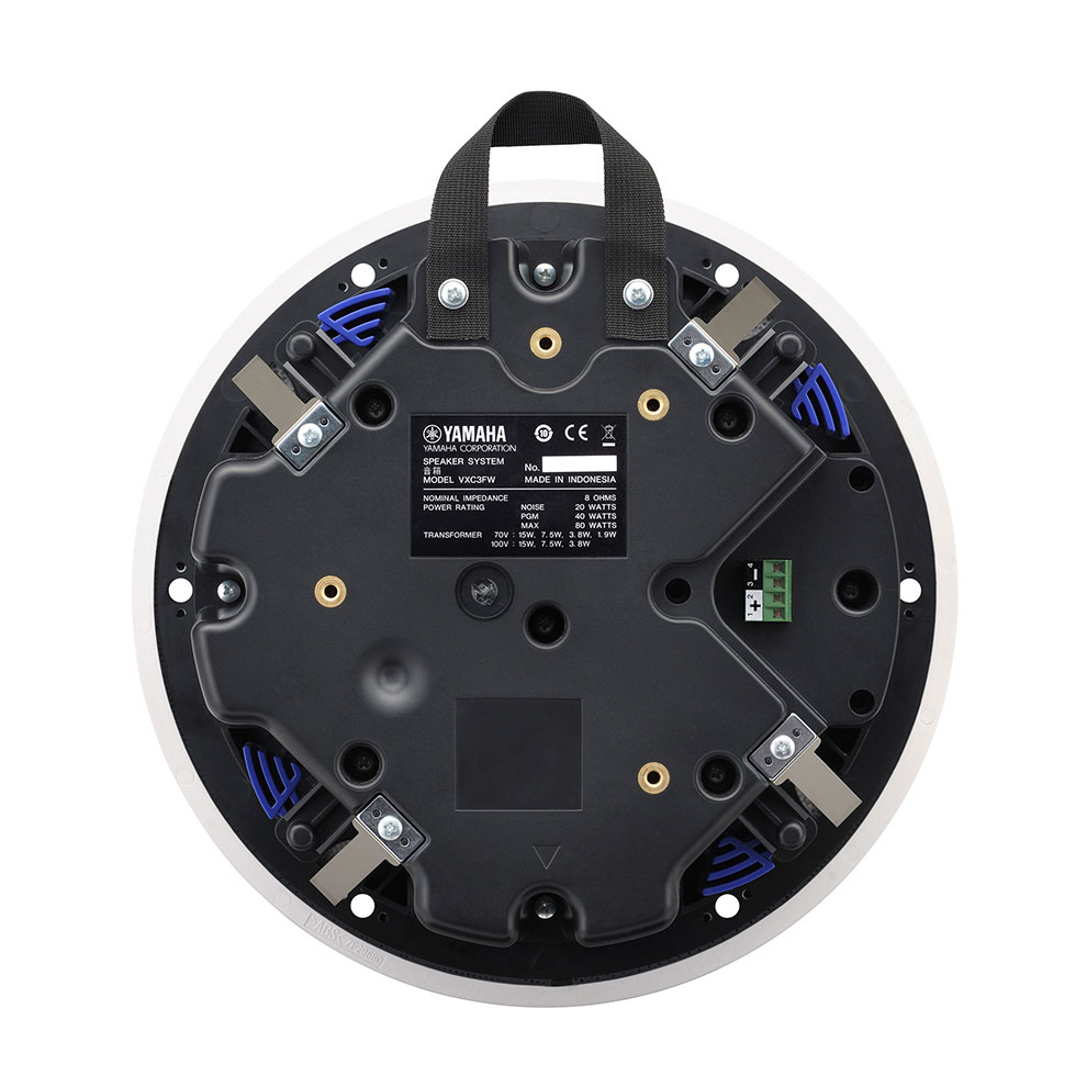 Встроенная ручка для переноски не только облегчает перемещение акустической системы, но и повышает безопасность при работе на стремянке.Препятствующий падению язычковый механизм надежно удерживает акустическую систему на месте, благодаря чему установка выполняется быстро и безопасно. Также предусмотрен высвобождающий рычажок, позволяющий при необходимости плавно извлечь акустическую систему из потолка.