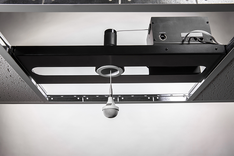 Выдвижной микрофон, установленный на потолке, имеет множество преимуществ по сравнению с традиционными настольными решениями: cтол остаётся свободным, все многочисленные кабели спрятаны за потолок, а не под столом конференц-зала. Звук от подвесных микрофонов зачастую превосходят настольные решения, так как мы избавляемся от шума, вибрации, передаваемые по столу, а также других источников, расположенных вокруг стола.