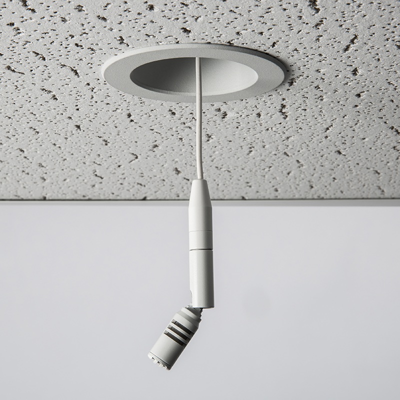 Индивидуально регулируемая высота подвеса микрофона позволяет не только с легкостью построиться под ситуацию, но и спрятать микрофон в потолок в конце мероприятия.