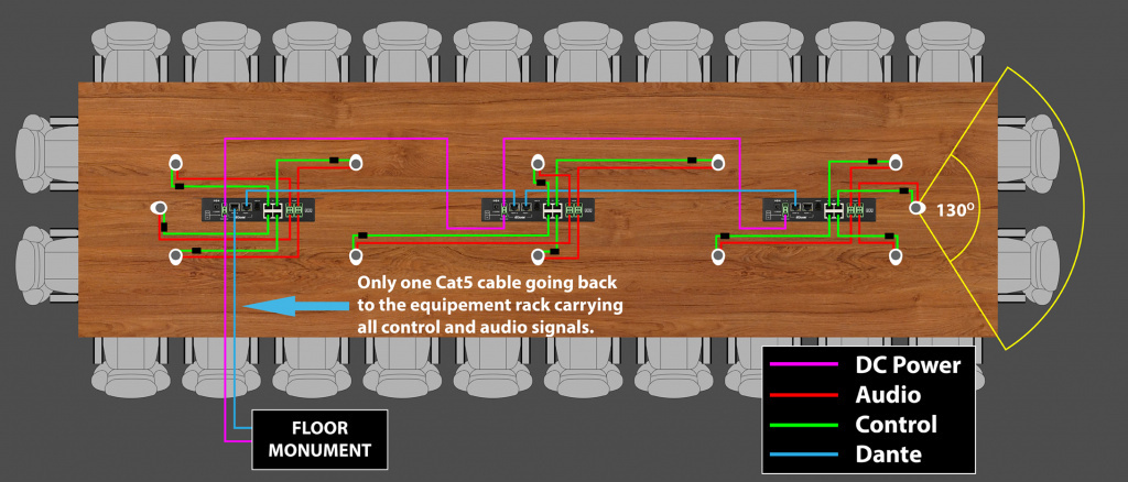 Продукт найдёт место в любой инсталляции, включая залы заседаний, конференц-залы, комнаты для видеоконференций и любые другие места, где сигнал с нескольких настольных микрофонов необходимо передать к стойке с оборудованием, без излишества коммутации.