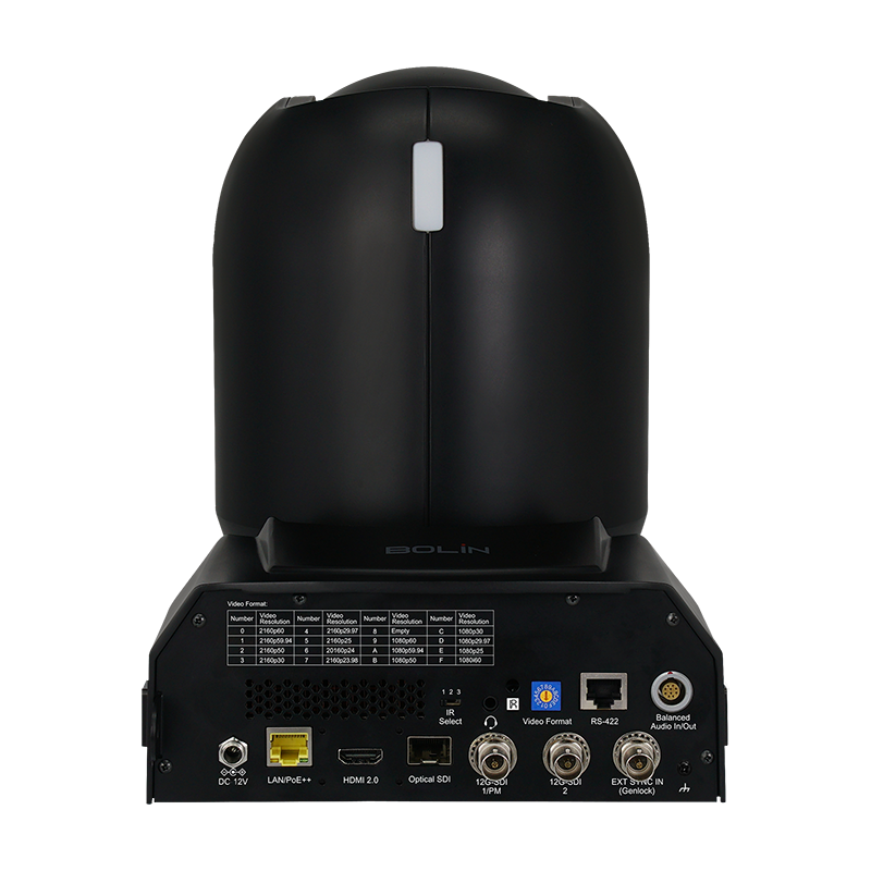 Bolin R9-420F – поворотная камера со стабилизацией изображения для внутренней эксплуатации, Bolin блок изображения Sony IMX715 КМОП датчик изображения 1/2,8, 20x, Dual 12G-SDI, HDMI, IP/H.264-H.265, 4K60, Fast HEVC, Genlock, 12VDC, черного цвета.