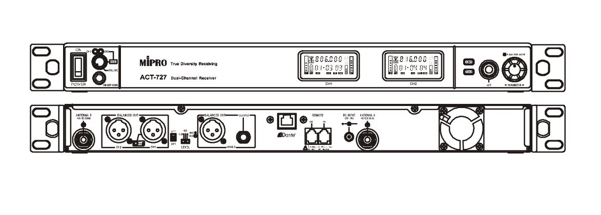 Mipro ACT-727 – двухканальный широкополосный UHF приёмник серии ACT-700.