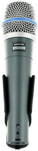 Динамический инструментальный микрофон Beta 57 A имеет улучшенные характеристики в области низких частот и великолепную отдачу в области высоких частот, позволяющую придать звуку инструментов больше “открытости” и естественности и придавая понятиям “чистота” и “четкость” абсолютное, совершенное значение. Суперкардиоидная однонаправленная характеристика микрофона обеспечивает надежную защиту от посторонних шумов и внеосевого окрашивания звука, улучшая отчетливость и яркость звучания каждого отдельного инструмента в мультиинструментальном миксе. Частотный диапазон микрофона 50 Гц — 16 кГц, сопротивление 150 Ом, уровень выходного сигнала -71 дБ (0.27 мВ). Beta 57 A великолепен при работе с ансамблями, акустическими и электрическими фортепиано, электроорганами с эффектом Лесли, акустическими и электрическими гитарами, бас-гитарами, банджо, медными и деревянными духовыми, малым барабаном, томами, тарелками и хай-хэтом.