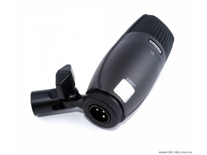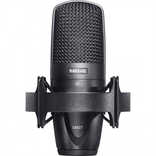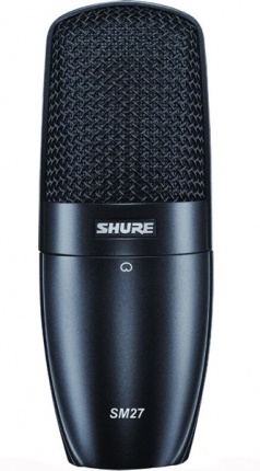 SHURE SM27 - универсальный конденсаторный микрофон с одинарной однодюймовой диафрагмой, с кардиоидной направленностью и значительным динамическим диапазоном 123 дБ (на частоте 1000 Гц). Собственный шум микрофона не превышает показателя 9.5 дБ-А, что соответствует уровню топовых профессиональных студийных микрофонов.
