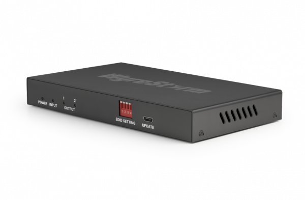 WyreStorm EXP-SP-0102-8K по-своему уникален: это мощный разветвитель 8K HDMI с поддержкой Plug&Play, который позволяет отправлять несжатые данные с разрешением до 8K при 60 Гц или 4K при 120 Гц на два дисплея. Однако, самая полезная функция, особенностью этого сплиттера, – наличие второго выхода, который умеет уменьшать масштаб контента либо с 8K>4K, либо с 4K>1080p! Кроме того, он совместим со сквозной передачей DSC (Display Stream Compression) версии 1.2a, методом сжатия в соответствии со спецификацией HDMI 2.1, позволяющим передавать сигнал без потерь 10K при 120 Гц.
