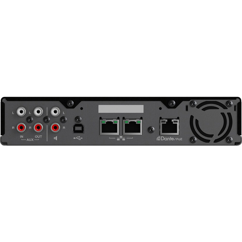 - Используется всего одно подключение по сетевому кабелю PoE+, что упрощает монтаж и позволяет управлять аудио по сети Dante