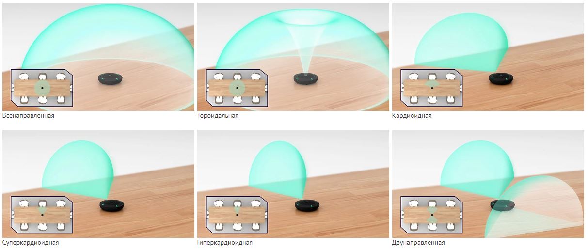 Автоматическое отслеживание голоса + 6 видов направленности микрофонов, которые можно использовать в зависимости от ситуации.