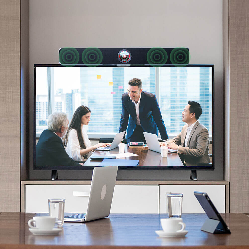 Видеобар HALO VX10 v2, оснащенный двумя полночастотными стереодинамиками, обеспечивает громкую и четкую передачу человеческого голоса, так что вы сможете отчетливо слышать каждое слово коллег или деловых партнеров, находящихся удалённо. Помимо проведения бизнес-конференций, вы также можете использовать его для прослушивания любимой музыки в свободное время.