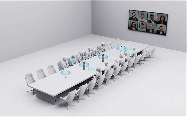 После объединения нескольких устройств в одну систему Kandao Meeting Omni позволяет выделить звук основного докладчика, не упуская из под контроля остальную аудиторию, ещё более быстро и плавно переключаясь между докладчиками.