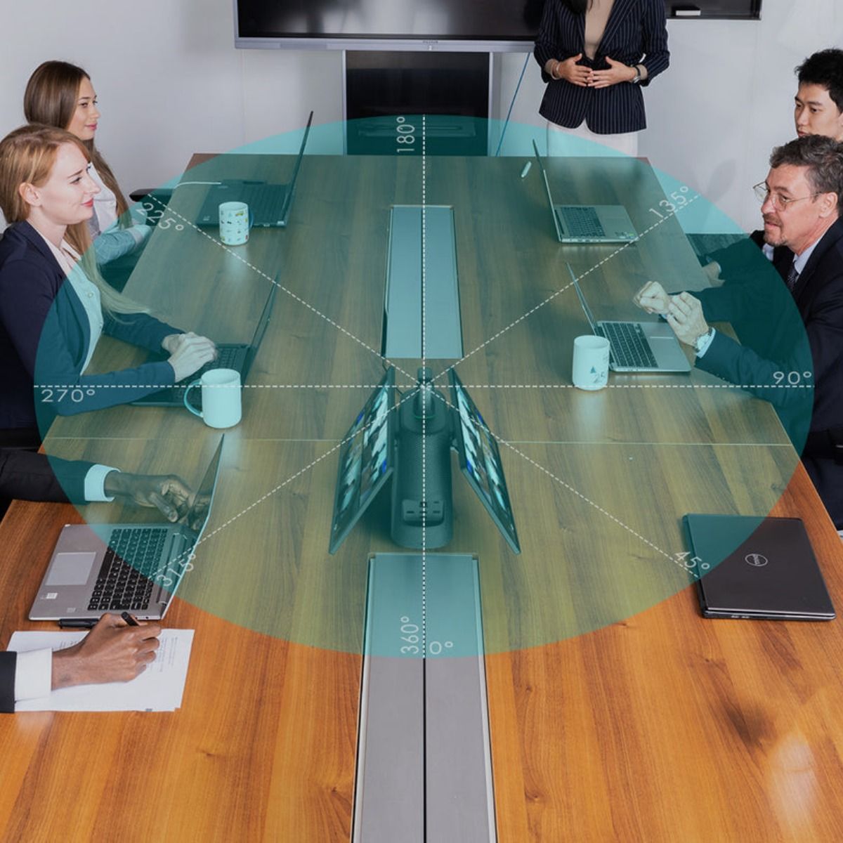 4K система для ВКС «все-в-одном»: камера 360° AI, два сенсорных экрана, микрофонный массив и громкоговоритель