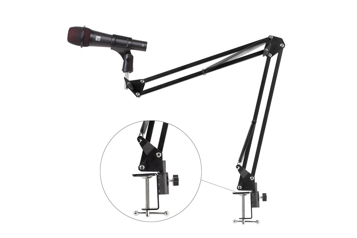 Пантограф для микрофона NB-35, настольная стойка, крепится к столу или другим плоским поверхностям при помощи струбцины. Подходит для динамических и не очень тяжелых конденсаторных микрофонов весом до 600 г.