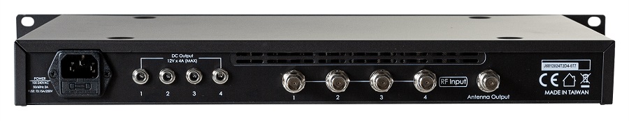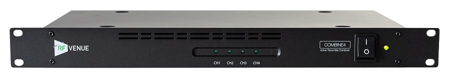 Shure RFV-COMBINE4E – активный комбайнер для передатчиков персонального ушного мониторинга COMBINE4 объединяет до четырех сигналов IEM в одну более мощную передающую антенну, исключая необходимость использования нескольких штатных антенн радиосистем и снижая накопление нежелательной интермодуляции.