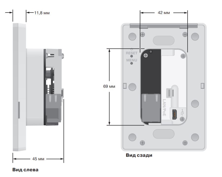 • Конфигурируемый красный и зеленый индикатор состояния указывает на доступность комнаты или статус вызова