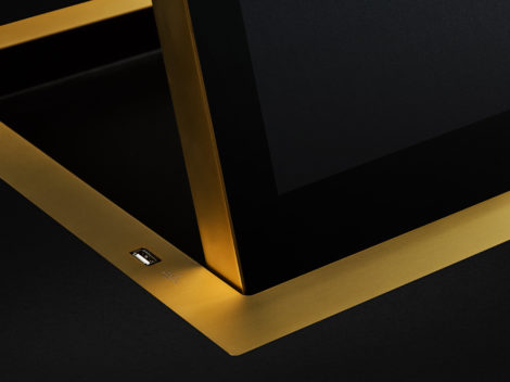 В компании Arthur Holm хотели создать новую золотую отделку для создания кастормизированных мониторов - светлый и блестящий золотой оттенок. После обширных исследований и экспериментов с разными тонами, отделкой и интенсивностью цвета удалось достичь идеального матового сатинового покрытия. Специалисты Arthur Holm очень довольны результатом, что использовали его на Dynamic1H.