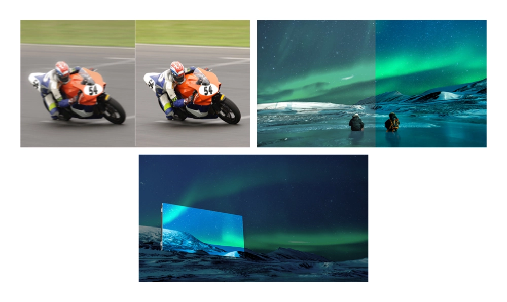 - Частота обновления 7680 Гц для показа изображения без мерцания и задержек, что важно для вещания, розничной торговли и диспетчерских