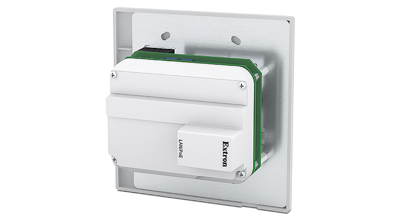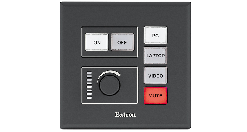 Сетевая кнопочная панель NBP 100 от Extron – это полностью настраиваемый интерфейс управления аудио- и видеосигналами для систем управления Extron серии Pro и устройств серии HC 400. Сетевые кнопочные панели подключаются к процессору управления по стандартной сети Ethernet. Эти удобные в использовании настраиваемые панели управления работают с процессором управления для активации различных функций AV‑системы, среди которых включение и выключение дисплея, коммутация входов, регулировка громкости и многое другое. Модель NBP 100 оснащена шестью кнопками с двухцветной подсветкой для удобства работы в помещениях с приглушённым светом и регулятором громкости с LED-индикаторами для управления различными функциями практически на любом устройстве. Сетевые кнопочные панели предлагают возможность питания PoE. NBP 100 устанавливается в распределительный короб на два ганга и поставляется в комплекте с чёрными и белыми лицевыми панелями и пластиковой рамкой.