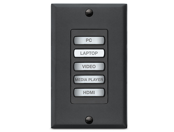 • Пять кнопок с подсветкой и мягким нажатием могут быть настроены при помощи конфигуратора Custom Button Builder от Extron