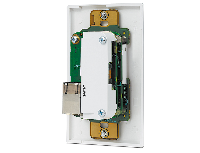Сетевая кнопочная панель NBP 105 D от Extron – это полностью настраиваемый интерфейс управления аудио- и видеосигналами для систем управления Extron серии Pro и устройств серии HC 400. Сетевые кнопочные панели подключаются к процессору управления по стандартной сети Ethernet. Эти удобные в использовании настраиваемые панели управления работают с процессором управления для активации различных функций AV‑системы, среди которых включение и выключение дисплея, коммутация входов, регулировка громкости и многое другое. NBP 105 D оснащена пятью настраиваемыми кнопками с мягким нажатием и подсветкой для работы в помещениях с приглушённым светом. Сетевые кнопочные панели предлагают возможность питания PoE. EBP 105 D устанавливается в распределительный короб на один ганг и поставляется в комплекте с чёрными и белыми настенными панелями Decorator, а также пластиковой рамкой.