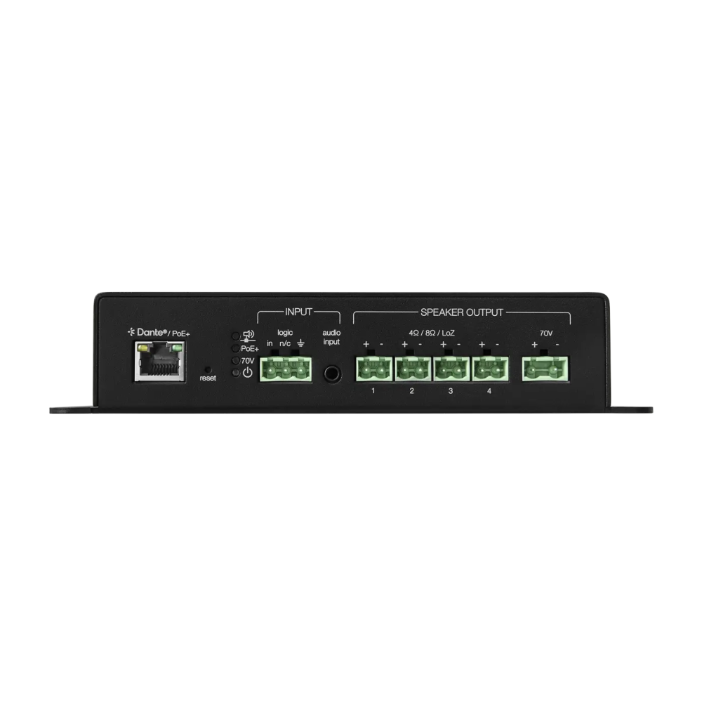 | Разъемы | 3-контактный разъем логического входа, 4 входа/выхода Dante, 70V выход |
