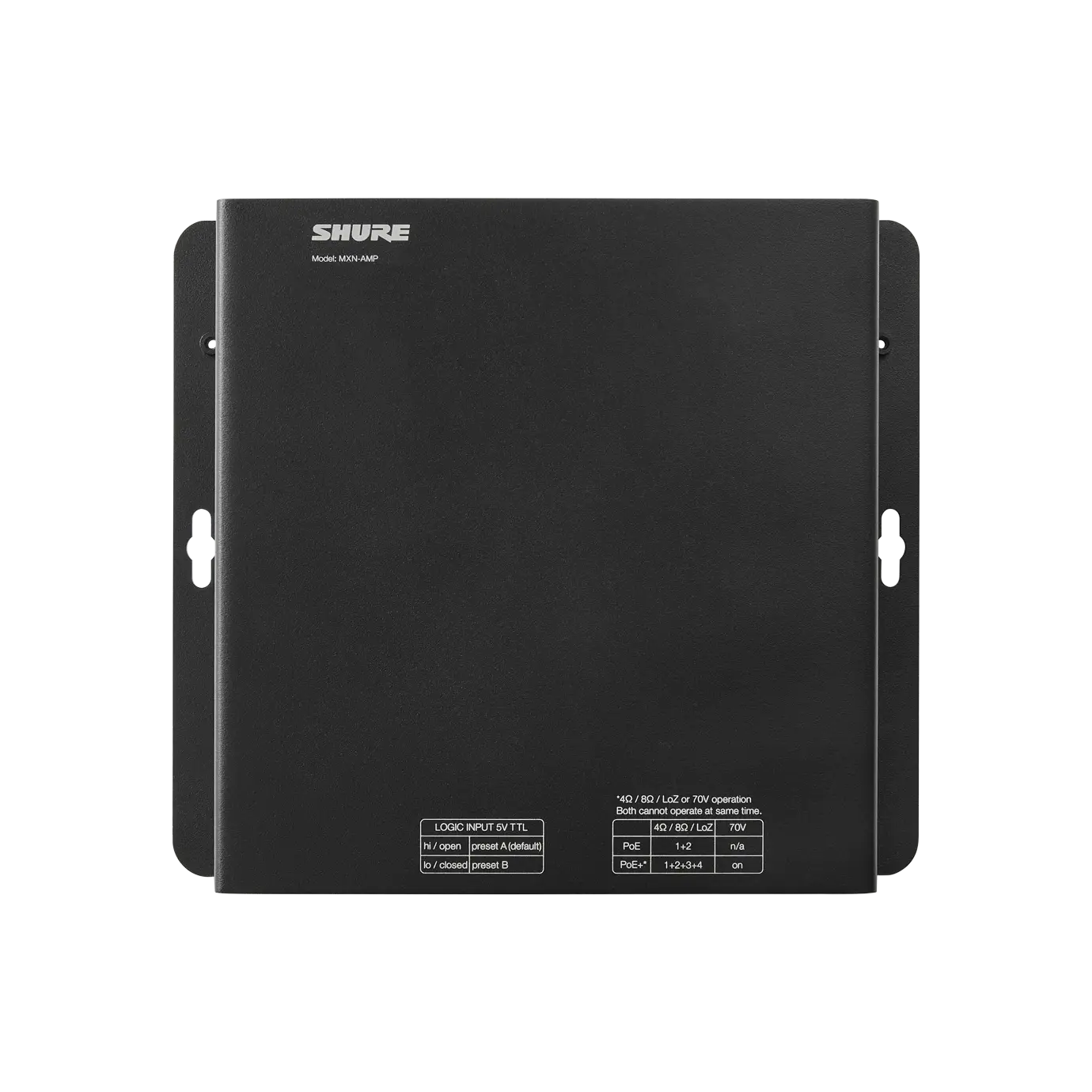 Shure MXN-AMP — многоканальный усилитель с питанием по PoE+, предназначенный для воспроизведения речи и фоновой музыки в переговорных комнатах. Подготовлен для работы с серией акустических систем Microflex Conferencing Loudspeakers обеспечивающих четкий и разборчивый звук для конференцсвязи.