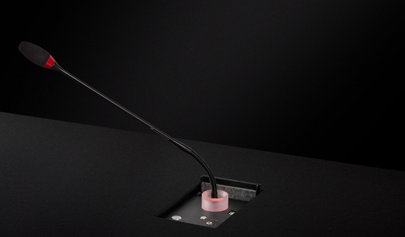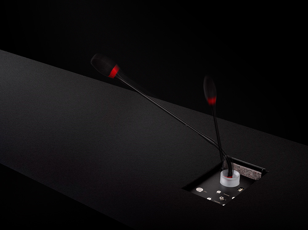 Запатентованный плавный механизм гарантирует, что микрофон DynamicTalk аккуратно скроется под столешницей – панель активируется простым нажатием кнопки. Когда необходимо – панель UnderCover включается и опускается в стол, микрофон плавно и без усилий поднимается в вертикальное рабочее положение. Затем можно легко настроить удобный угол наклона микрофона для комфортного общения.