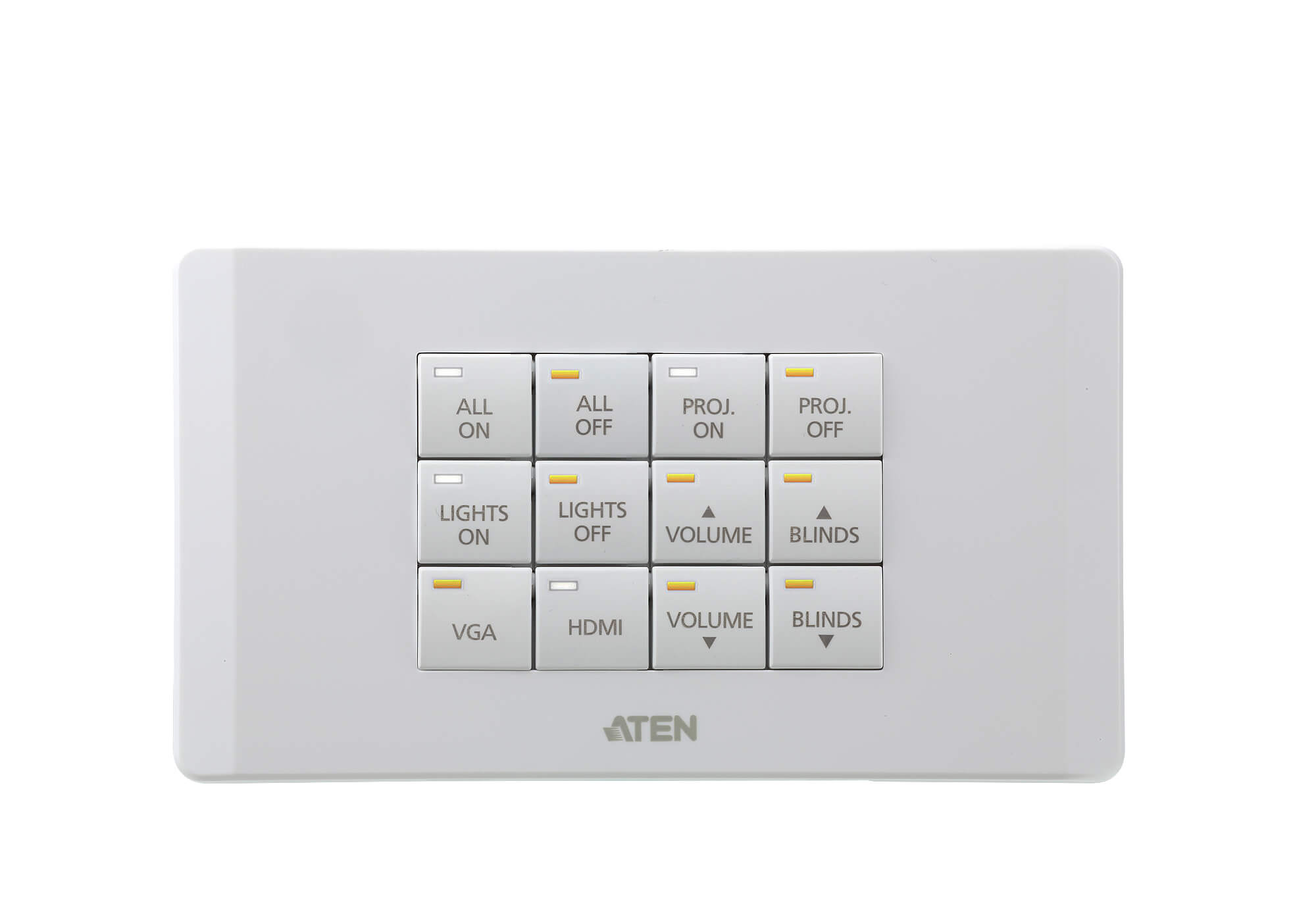 ATEN VK112EU, это полностью настраиваемый 12-кнопочный блок клавиш (клавиатура), предназначенный для использования с системой управления оборудованием от компании ATEN (ATEN Control System). Обладая стандартной настенной лицевой панелью блок управляющих клавиш осуществляет функции интерфейса управления устройствами, расположенными в помещении. Заложенная разработчиками гибкость конфигурирования позволяет пользователю, с легкостью подобной конструктору Lego, создавать до 125 различных комбинаций, содержащих от 6 до 12 кнопок. При подключении клавиатуры VK112EU к блоку управления VK2100/VK1100 по локальной сети, используя программное обеспечение VK6000, можно без труда выполнить настройку предпочитаемого управления любым подключенным устройством. По завершению настройки кнопок Вы получаете мгновенное и умное управление оборудованием с одной или нескольких клавиатур, позволяющих взаимодействовать с любым устройством, расположенным в помещении. 12-кнопочный блок управляющих клавиш VK112EU, это весьма доступное решение, которое идеально подходит для использования в качестве основного интерфейса в небольших переговорных или в качестве дополнительного устройства управления в аудиториях и конференц-центрах.