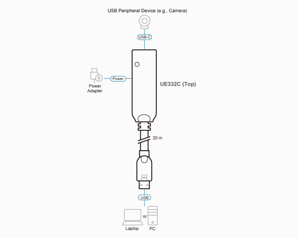 Кабель-удлинитель USB 3.2 Gen1 модели UE332C компании ATEN позволяет увеличить на 20 метров расстояние между ПК/ноутбуком с поддержкой USB тип A и устройством, оснащенным портом USB-C. Обеспечивая, наряду с высокой производительностью, надежную передачу данных и используя соответствующую USB 3.2 Gen1 полосу пропускания данных в 5 Гбит/с, кабель-удлинитель UE332C сохраняет обратную совместимость со стандартами USB 2.0/1.1.