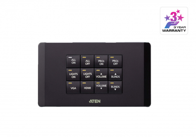 ATEN VK112EU1, это полностью настраиваемый 12-кнопочный блок клавиш (клавиатура), предназначенный для использования с системой управления оборудованием от компании ATEN (ATEN Control System). Обладая стандартной настенной лицевой панелью блок управляющих клавиш осуществляет функции интерфейса управления устройствами, расположенными в помещении. Заложенная разработчиками гибкость конфигурирования позволяет пользователю, с легкостью подобной конструктору Lego, создавать до 125 различных комбинаций, содержащих от 6 до 12 кнопок. При подключении клавиатуры VK112EU к блоку управления VK2100/VK1100 по локальной сети, используя программное обеспечение VK6000, можно без труда выполнить настройку предпочитаемого управления любым подключенным устройством. По завершению настройки кнопок Вы получаете мгновенное и умное управление оборудованием с одной или нескольких клавиатур, позволяющих взаимодействовать с любым устройством, расположенным в помещении. 12-кнопочный блок управляющих клавиш VK112EU, это весьма доступное решение, которое идеально подходит для использования в качестве основного интерфейса в небольших переговорных или в качестве дополнительного устройства управления в аудиториях и конференц-центрах.