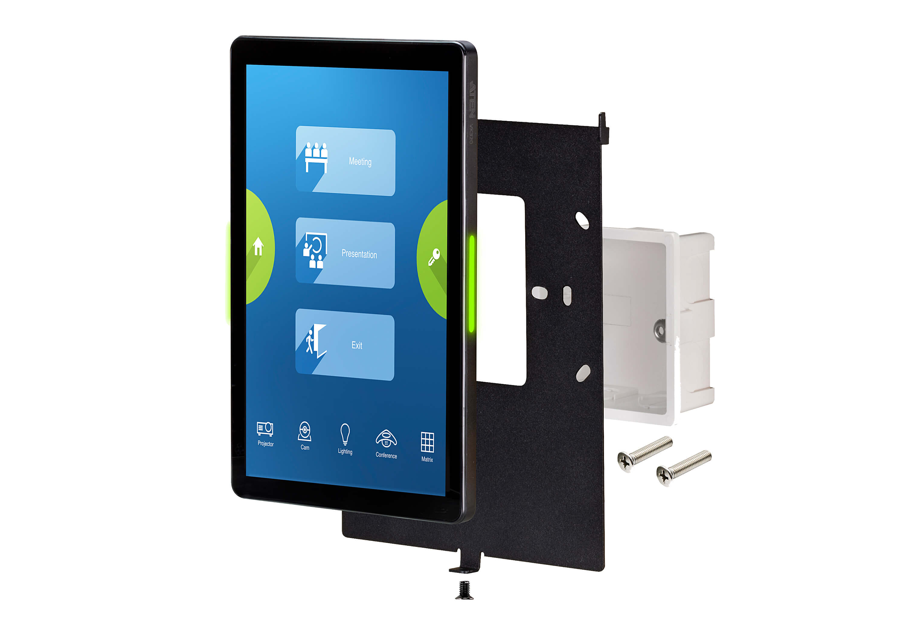 ATEN VK320 - 8-дюймовая сенсорная панель обладает узкой рамкой и емкостным мультисенсорным IPS ЖК-экраном. Изначально установленное приложение ATEN Control System делает сенсорную панель совместимой с контроллерами (Control Box) и кнопочными контроллерами (Control Pad) системы управления ATEN.