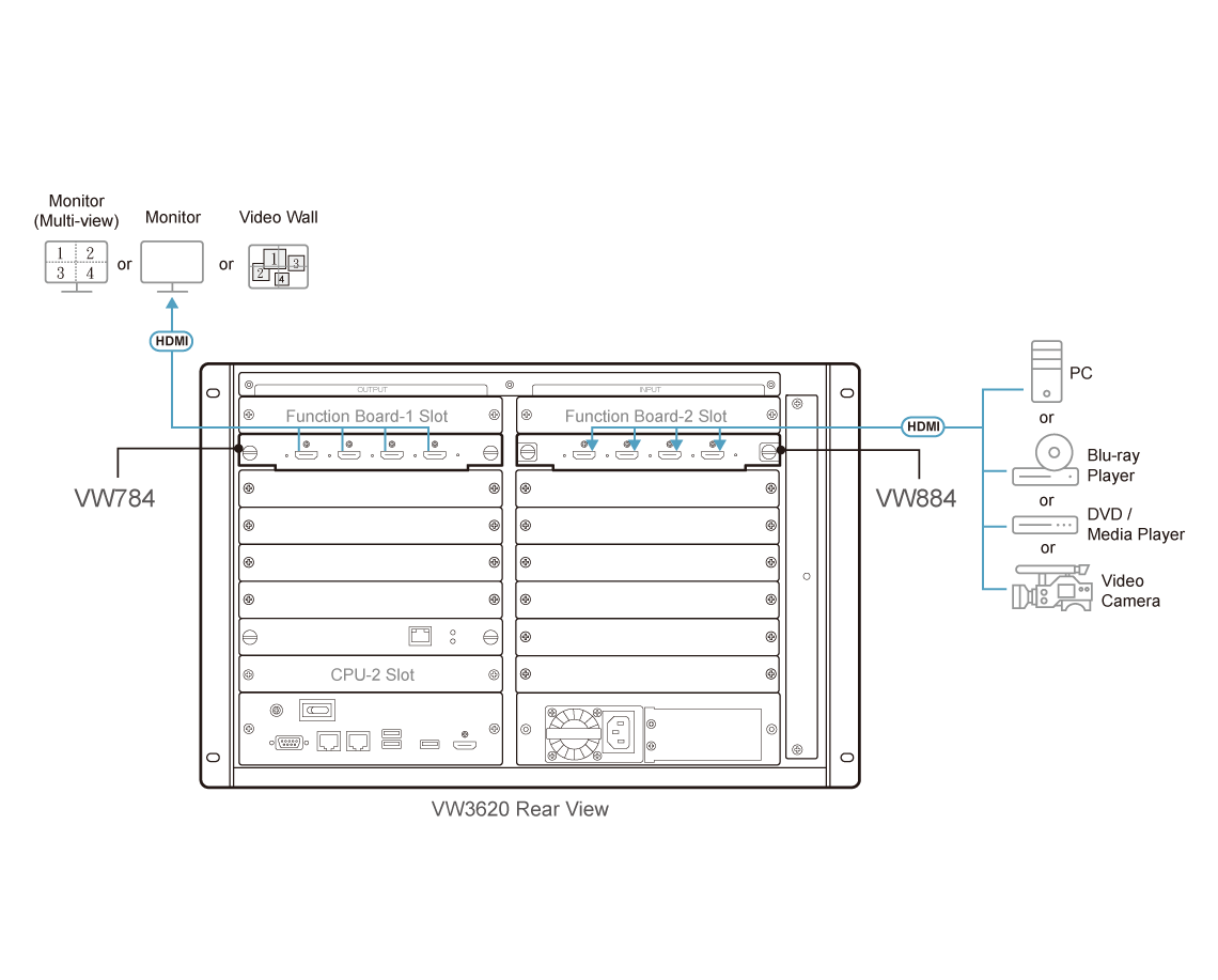 - 1 x VW884 4-портовая плата ввода 4K HDMI для серии устройств VW