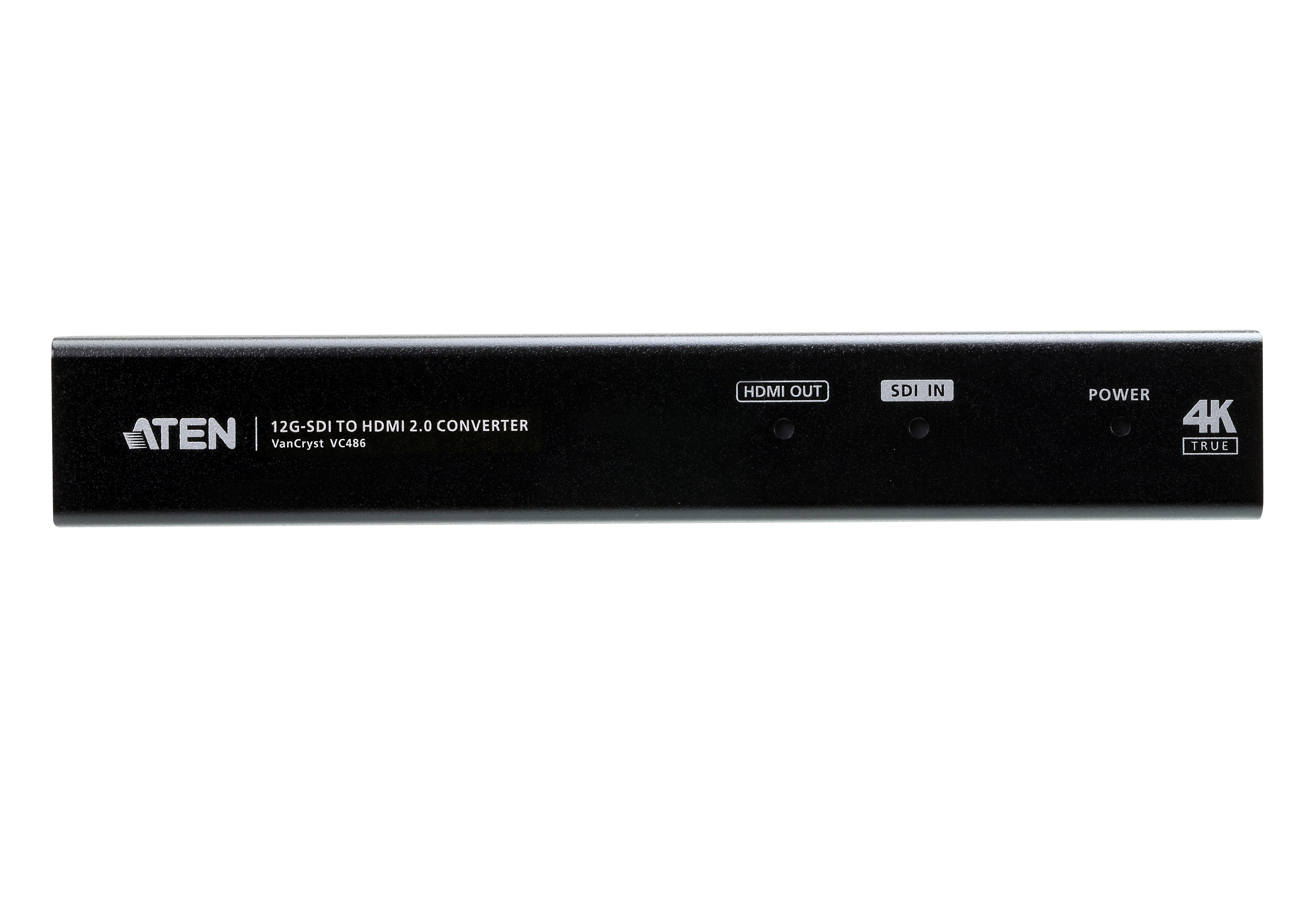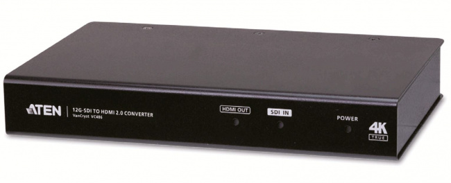ATEN VC486 – это конвертер 12G-SDI в HDMI 2.0, который в режиме реального времени преобразует входные сигналы HD/3G/6G/12G-SDI в формат HDMI.