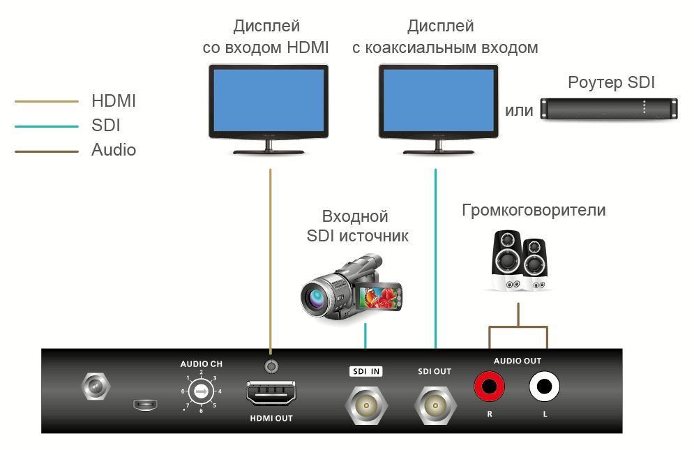 • Повторное перетактирование SDI-сигнала для обеспечения высокого качества передачи