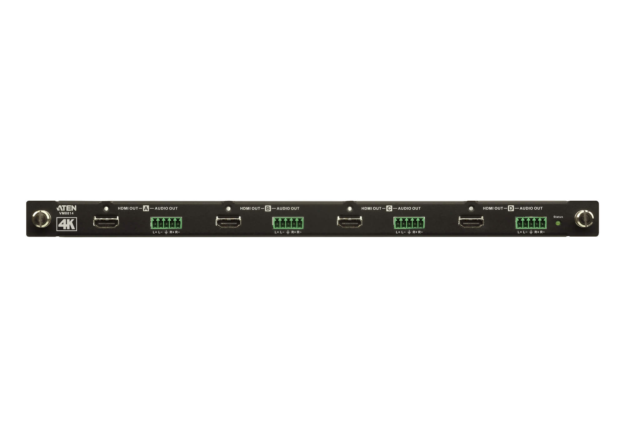 4K HDMI-плата вывода VM8814, работающая с модульными матричными коммутаторами компании ATEN, предназначена для организации простого способа маршрутизации между 4 источниками HDMI-сигнала и 4 дисплеями. Помимо интерфейса HDMI, передающего цифровые аудио/видео сигналы, плата вывода VM8814 обладает 4 стерео аудиовыходами, позволяющими извлекать стереозвук из HDMI-потока.